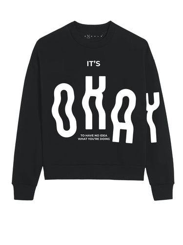 We are all a Work In Progress. This regular fit sweatshirt reminds us that things take time and it's okay to have no idea what you are doing. It has a slogan in the front with a sleeve print.